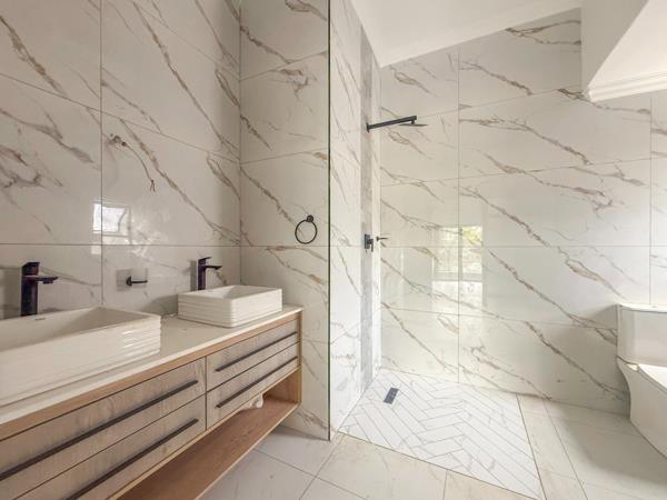 This expansive residence boasts four generously sized bedrooms, each with its own ensuite bathroom and built-in cupboards. The downstairs bedroom is ideal for guests or extended family and includes an additional room that can serve as a private lounge, gym, or reading nook. A second versatile room downstairs opens to the backyard and can be tailored as a home office, prayer room, or hobby space. Upstairs, three beautifully appointed bedrooms open onto private balconies, and a large pyjama lounge offers a tranquil retreat with scenic views.