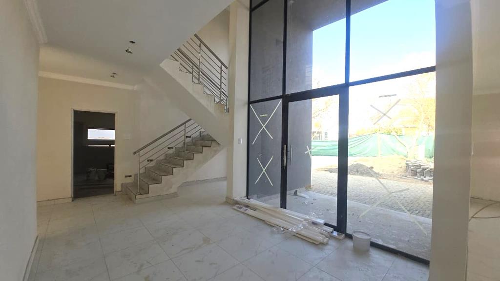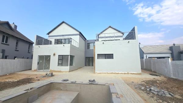 This stunning double-storey 4-bedroom, 4-bathroom home offers the perfect blend of style and comfort in a secure estate. Designed with modern living in mind, the home features an open-plan kitchen, dining, and lounge area that seamlessly flows to a covered patio with built-in braai, overlooking the sparkling swimming pool and private garden.