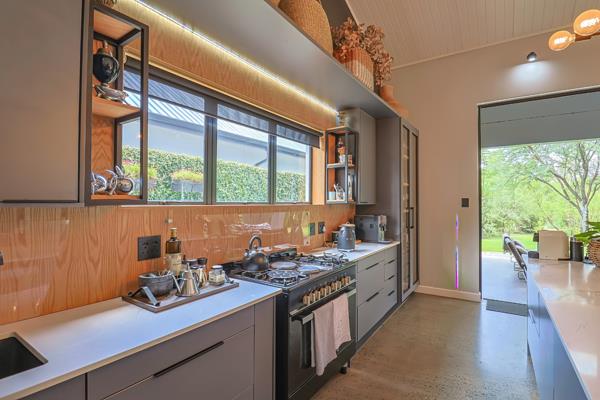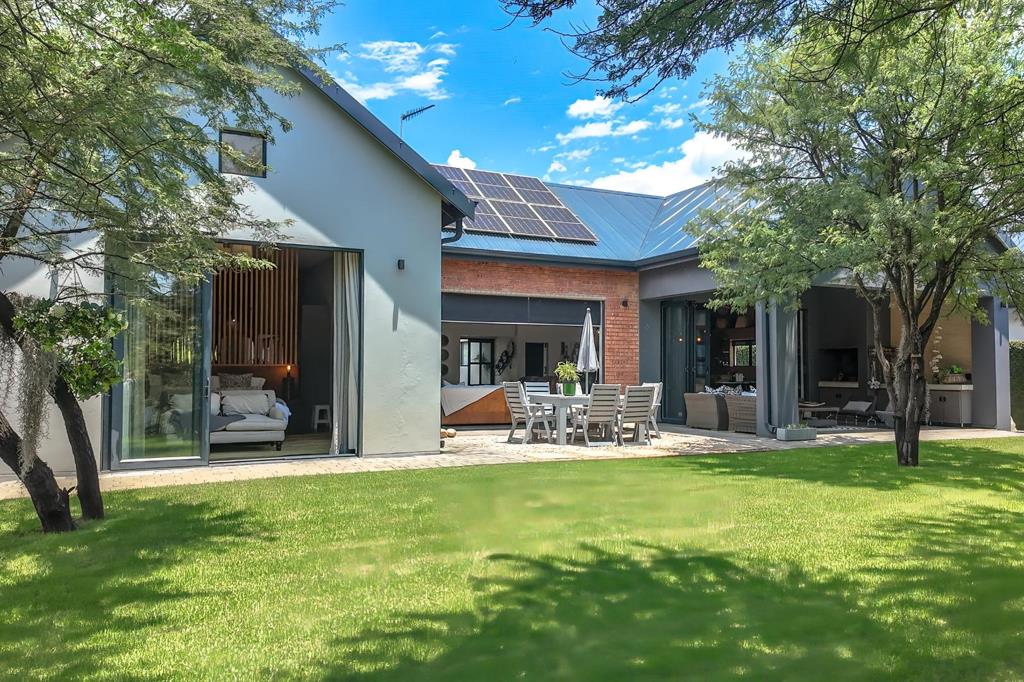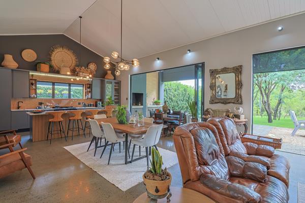 This home, situated in the lovely Landsmeer Equestrian Estate, reflects design and easy flow, textures and light, open plan living at its best. The home offers a large open plan living area which opens onto a veranda overlooking natural bush, separate scullery and laundry, practical store off the double garage, a study, three bedrooms, 3 bathrooms 2 en-suite. Entering the property, a classic courtyard greets one, before entering the home through the entrance hall. The double volume ceiling gives extra visual space. A wood burning stove takes the chill out of winter evenings. The bathrooms are a delight all on their own. A strong borehole and powerful solar system are extremely useful value adds. Words like peaceful, luxury and easy living all describe this modern day masterpiece. Phone me for a private viewing.