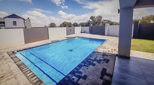 Designed for both comfort and entertainment, this home features two expansive lounges and a family room that opens out to a covered patio with a built in braai, ideal for gatherings with family and friends. The sparkling swimming pool and well maintained garden create the perfect outdoor retreat, while the home remains pet friendly. The property is equipped with a double garage and offers additional secure parking.