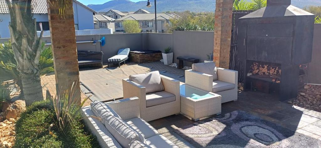 Your approach to the home is greeted by a spacious patio with built-in braai overlooking a sparkling swimming pool and an adjacent boma. An entertainment area suitable for summer or winter days. Fantastic views over the estate''s green zone below and the Magalies Mountain range beyond enhances the reason for entertaining or relaxing.