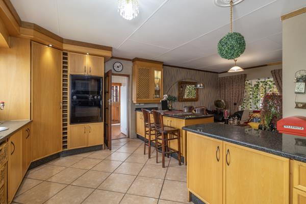 The spacious kitchen is fitted with granite countertops, ample light oak cabinetry, rinse bowl, gas stove with extractor fan, double electric oven, a breakfast nook, and a scullery with space for all your appliances including a top loader.