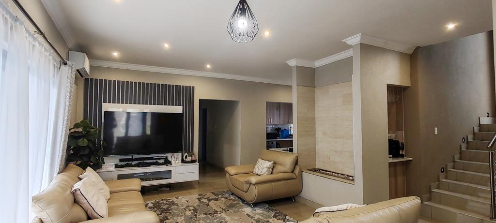 The heart of the home is a modern, open-plan space designed for effortless living. The lounge features a cozy gas fireplace, perfect for chilly evenings, and is complemented by striking feature TV walls and a built-in TV stand. The contemporary kitchen is a chef''s delight, boasting a breakfast nook, a combination of electric and gas ovens, and an electric stove.