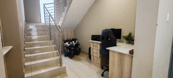 Entertaining is a pleasure with a built-in braai on the spacious balcony, where you can soak up those spectacular mountain vistas. For added convenience and peace of mind, the home includes an inverter, ensuring an uninterrupted power supply, and is situated within a secure complex. Aesthetic feature walls with mirrors add a touch of sophistication.