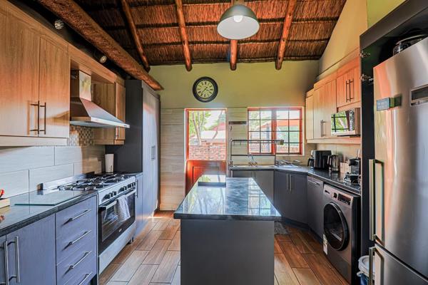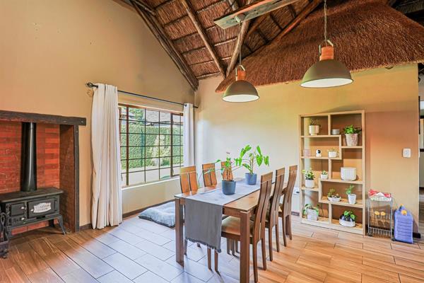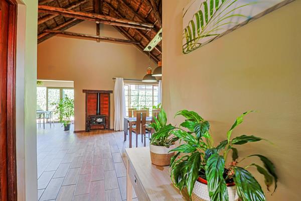 The property boasts not only aesthetic appeal but also practicality, featuring a double garage with a generous loft area above. This versatile loft is ideal for a study or workspace and is equipped with air conditioning for year-round comfort. The addition of a charming wood-burning stove in the lounge provides warmth during the winter months, while an inverter system ensures reliable back-up power, offering peace of mind during load-shedding.