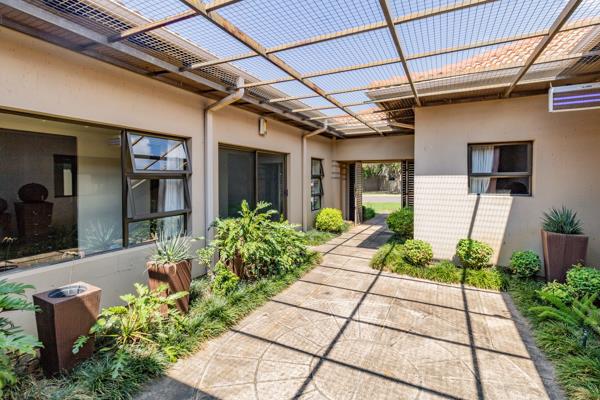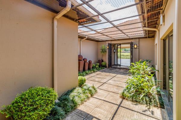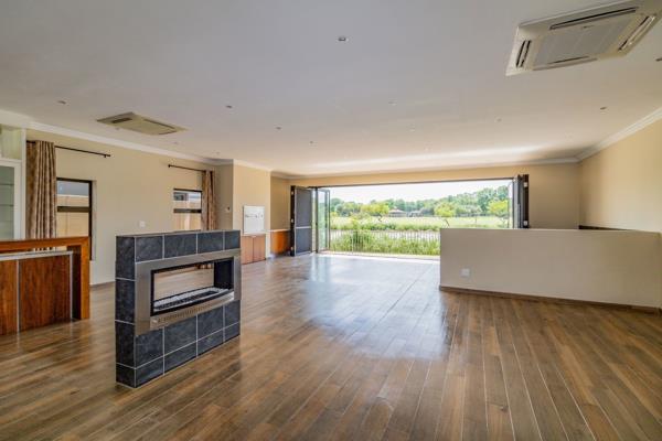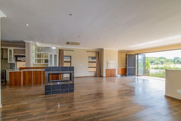 Safe and secure family home. Welcome to a secure residence within a highly sought-after estate. The house seamlessly integrates open-plan living areas and an indoor braai space with a heated swimming pool. Expand your living space by opening the stack doors to bring the outdoors inside. The living areas have a central cooling unit to maintain ideal conditions while overlooking the beautiful internal lake.