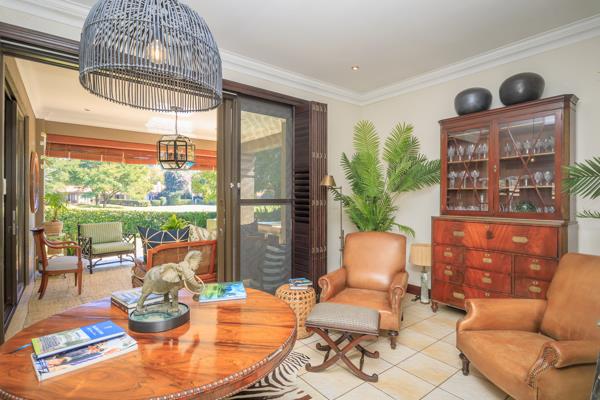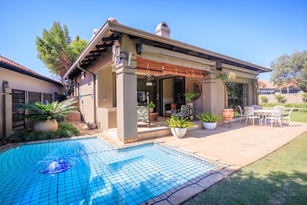 The open-plan living area layout seamlessly connects the interior to a covered patio, perfect for entertaining. Step outside to enjoy a sparkling swimming pool, direct access to the golf course and expansive landscaped gardens, creating a wonderful outdoor lifestyle.