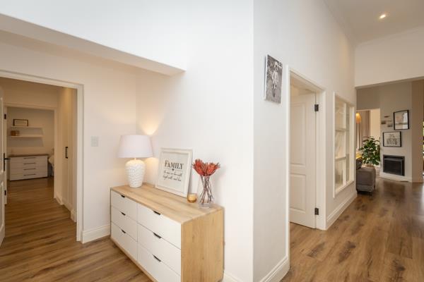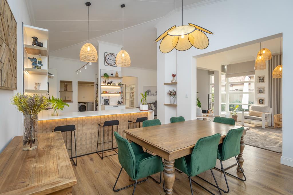 High ceilings, featured light fittings, mood lighting and quality finishes create a sense of space and sophistication. The tastefully designed kitchen is ideal, with SMEG gas stove & oven, breakfast bar island, separate scullery. A perfect blend of natural textures and modern flair.