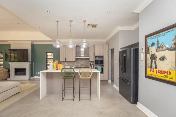 The dining space, anchored by statement lighting featured over the expansive dining area and a combustion fireplace sets the mood in winter. An ideal space for hosting or everyday meals together. Soft neutral tones, modern finishes, and warm touches make the home inviting, while the open-plan layout ensures theres ample space to enjoy and relax. A cozy fireplace in the lounge adds warmth during winter evenings, while the modern kitchen a separate scullery, walking in pantry & an inviting work space makes cooking a pleasure.