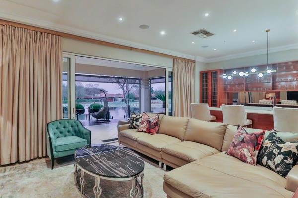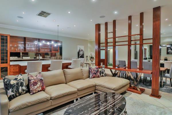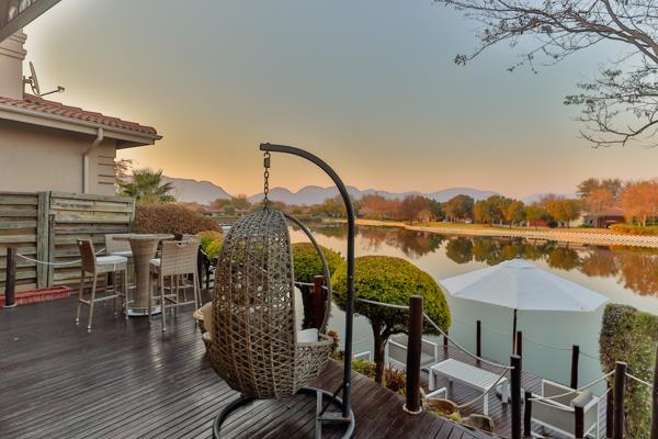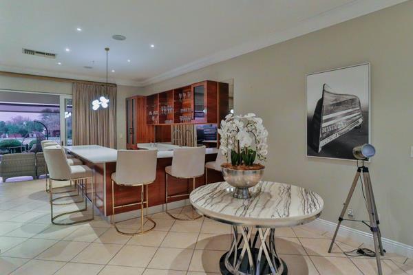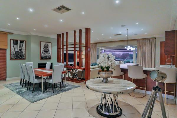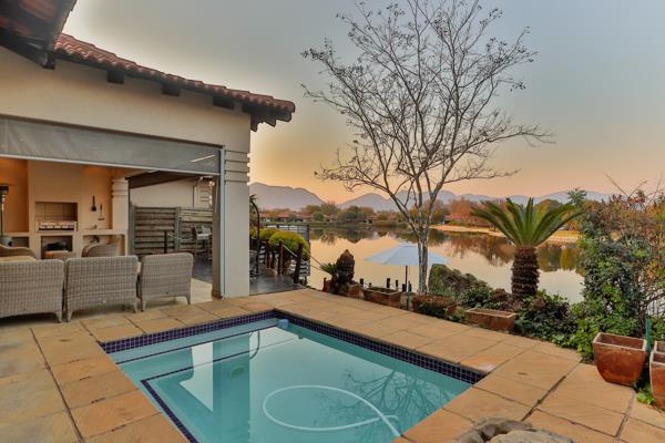 WELCOME TO OUR EXCLUSIVE MANDATE - Set on a tranquil internal dam with uninterrupted views of the majestic Magaliesberg Mountains, this beautifully positioned home offers a rare blend of modern comfort and natural serenity. The spacious open plan living and entertainment area features high ceilings, a gas fireplace, and a seamless flow between the lounge, dining, bar, and well-appointed kitchen, enhanced by a tastefully designed room divider that adds both style and functionality.