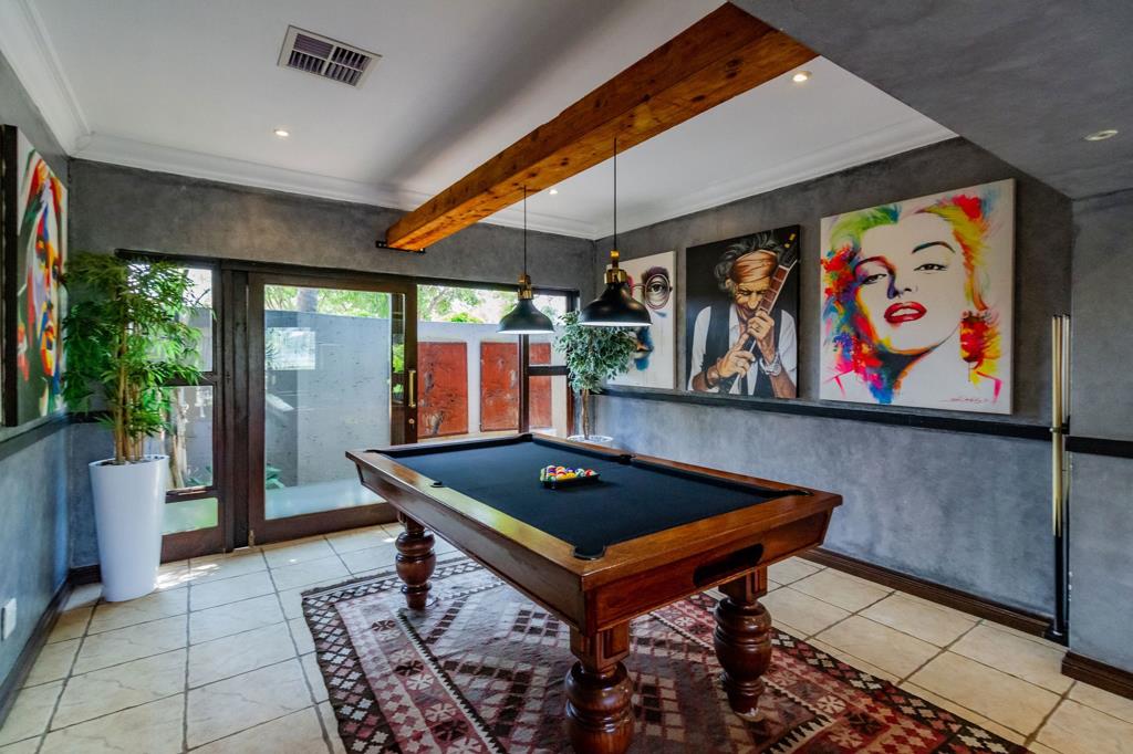 Fully Furnished Home. This turnkey, furnished home is ready for its next owner. It features 5 generous bedrooms and 4 bathrooms, all in one wing. Four bedrooms open straight onto the large garden for easy living. The open-plan living space keeps guests entertained, where you can shoot some pool, hang out at the bar, watch a movie by the cosy combustion fireplace, or cook together.