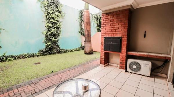 The gorgeous well sized kitchen, overlooking the open plan living area, leading to the patio, with a built in braai and a beautiful low maintenance garden.