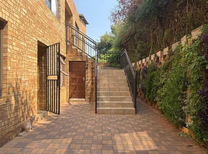 This meticulously presented residence, situated in the desirable suburban enclave of Schoemansville, Hartbeespoort, South Africa, offers a sophisticated living experience. The property exhibits robust brick construction and features well-maintained paved outdoor areas, complemented by established greenery. Access is secured via a lower entrance with a security gate and a main entrance also fitted with a security gate, enhancing peace of mind for residents. An external staircase with sturdy metal railings provides convenient access to the upper level.