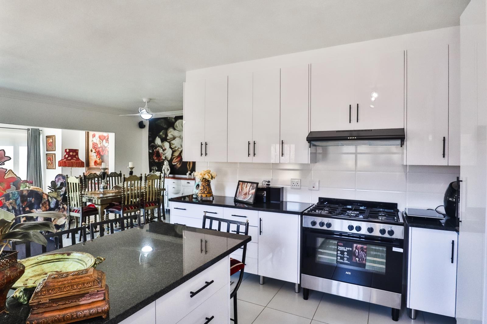 Featuring 3 bedrooms, 2 bathrooms, and an additional guest bathroom, this home is perfect for comfortable living. Two of the bedrooms open onto a spacious patio with stunning views of the Magaliesburg Mountain Range and Hartbeespoort Dam. The modern, open-plan kitchen and living area offers a spacious feel, ideal for both family living and entertaining guests.