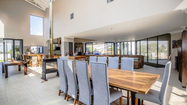 Inside, the home blends aviation-grade precision with warm, luxurious finishes. Soaring vaulted ceilings enhance the sense of space, while custom white oak cabinetry and solid embuia bedroom cupboards reflect timeless craftsmanship. The expansive open-plan kitchen is a chefs dream, equipped with a high-end gaselectric SMEG stove and extractorperfect for entertaining on any scale.