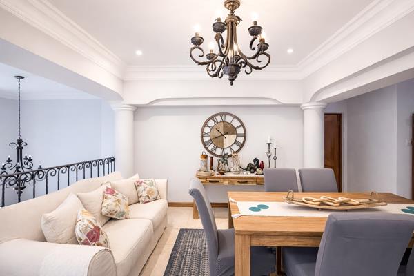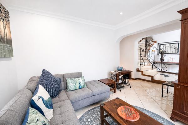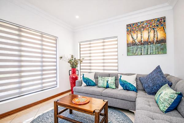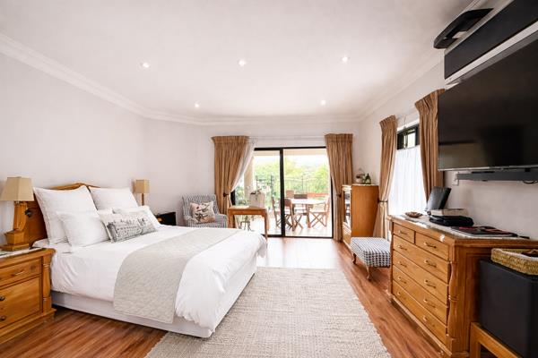 Making your way upstairs, the home unfolds into a generous open-plan living, dining, kitchen and entertainment space. Large stacking doors introduce abundant natural light and frame serene views of the surrounding greenery, blurring the boundary between indoors and nature. The kitchen is well-appointed, featuring ample cabinetry, a built-in oven, SMEG gas hob and a separate scullery that leads out to a courtyard. This level also includes a well-positioned guest toilet and a spacious main bedroom suite. Complete with a walk-in closet, spacious en-suite bathroom and a private balcony overlooking a picturesque greenbelt, the main suite offers a quiet retreat where buck can often be seen roaming freely.