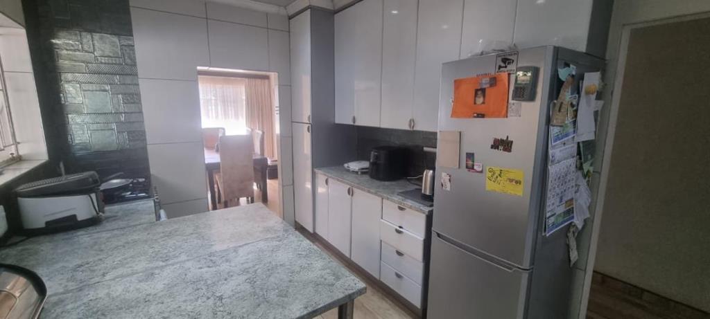 This three bedroom house is situated in Manzil Park and is on the sought after corner. The main bedroom has built in ward robes and en suite bathroom consisting of a glass shower, hand basin and toilet. The kitchen is modest with lots of cupboards and gas stove and leads to the dining room. The lounge is spacious and has a fire place. The outside room has its own toilet and can be used as a flatlet.