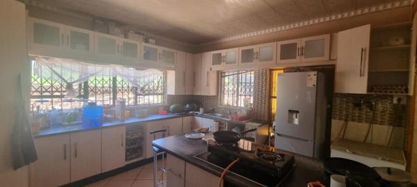 The kitchen is open-plan with ample cupboard space.