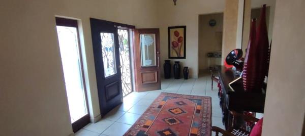 The braai-room itself is very spacious with a built-in braai and enough space for another lounge area. It also opens up to a beautiful, lush courtyard that leads to the pool.