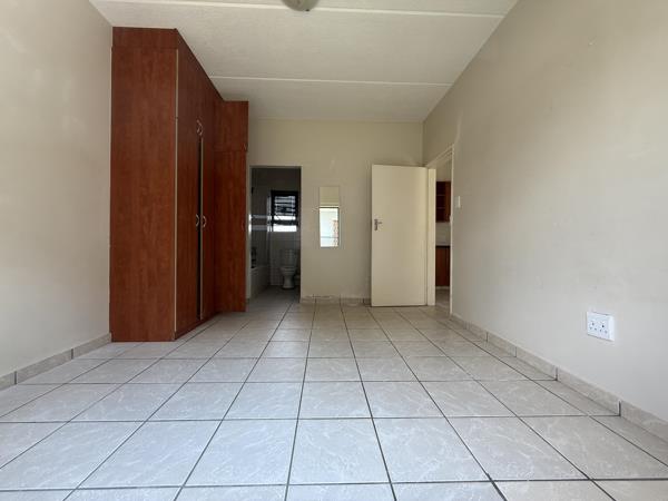 Open plan living space with kitchen, kitchen cabinetry in a cherry wood finish. Bedroom with ensuite bathroom is at the side of living space. Covered parking, with ample open quest parking.