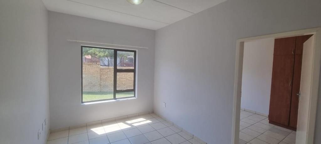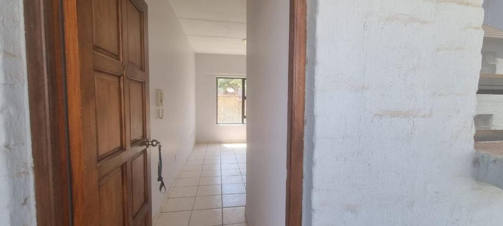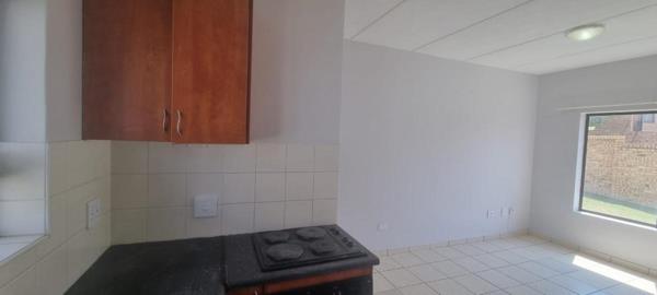 This bachelor apartment is ideal for a single person or a couple. The property is situated in an exclusive estate in the suburb of Doringkruin. The apartment is on the ground floor of this double storey block of apartments. The kitchen is modest and comprises of a stove with an oven and lots of cupboards. The living room can also be used as a dining room. The bedroom has en-suite bathroom. There is a single car port allocated for each unit. The main gate is manned 24 hours by a security personnel.