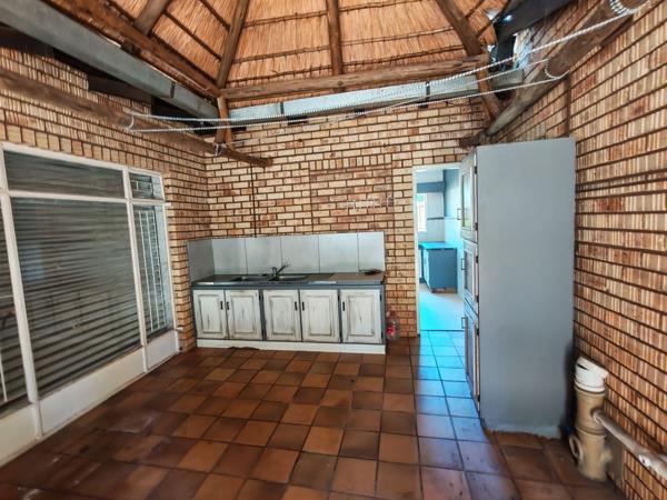 Step outside to discover an expansive backyard featuring a cozy boma, perfect for enjoying evenings under the stars. The property also includes a convenient scullery, a storage room, and a separate domestic room with an outside toilet, offering additional utility and privacy.