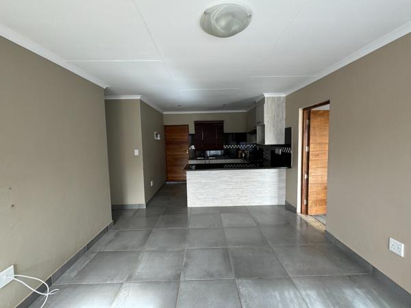 Neat open plan kitchen and living areas.