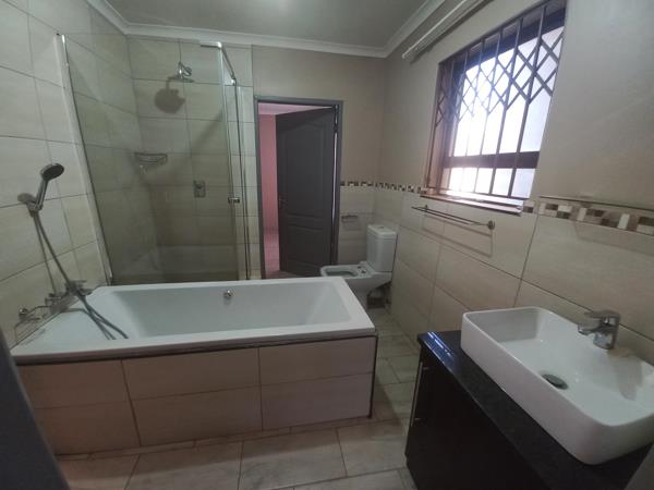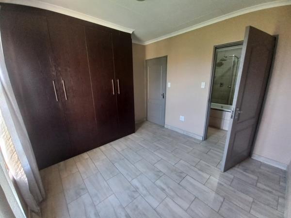 This stunning home is designed for ultimate convenience. The generously sized main bedroom features a full en-suite bathroom and a walk-in closet, providing both comfort and ample storage. The open-plan kitchen and lounge create a perfect space for family gatherings. The modern kitchen is equipped with a gas stove and offers plenty of cupboard space. Two additional bedrooms are conveniently connected to the second bathroom. The property includes a three-car garage with an electric motor gate for added security. Enjoy outdoor entertaining with a built-in braai area set against a backdrop of a beautifully landscaped lawn.