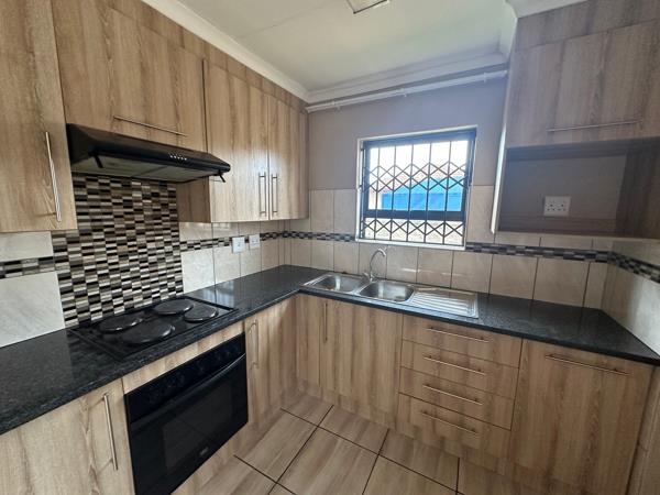 Kitchen is filled with ample of cabinetry and working space, along with undercounter oven and hob with extractor. Three bedrooms are down the hallway with built in cupboards. Main has an ensuite bathroom, with a second bathroom across the hallway.