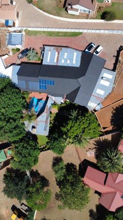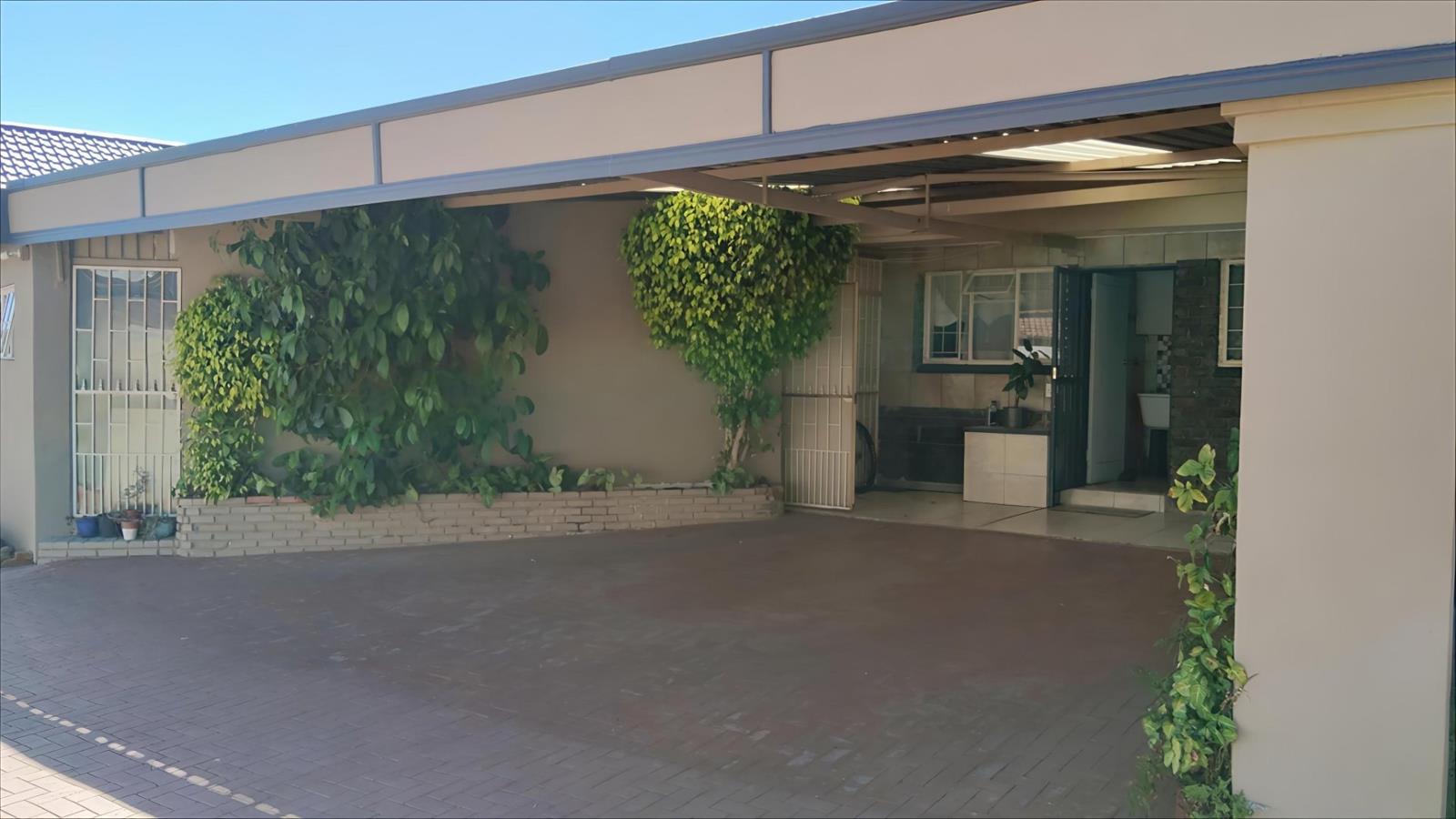 Sustainability and convenience are prioritized with a borehole, automated irrigation system, 5kVA inverter with two lithium batteries, and nine solar panels ensuring uninterrupted power and water supply. The home also features a backup water system with filtration to the entire house, maintaining quality and reliability.