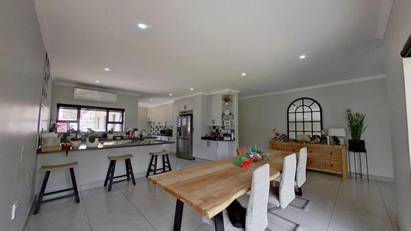The dining room and kitchen flow into each other with a beautiful open-plan layout.
