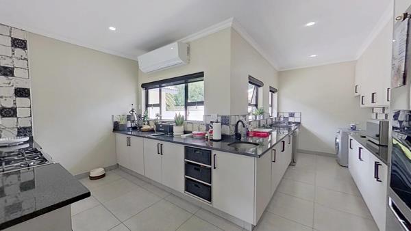 From there you can go the spacious lounge which in turn exits onto the covered patio with built-in braai.