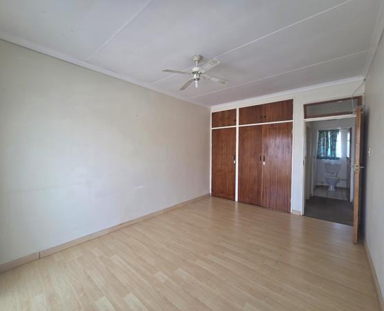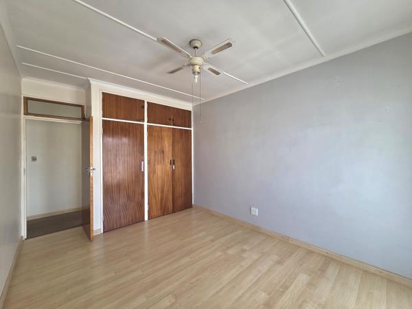 Two comfortably sized bedrooms, fitted with built-in cupboards, a ceiling fan, and neat laminated flooring. The unit includes a well-designed bathroom with a bath and basin, plus a separate toilet for extra convenience.