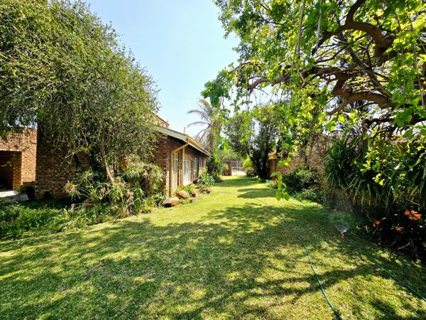 The established spacious garden creates a peaceful atmosphere under the trees.