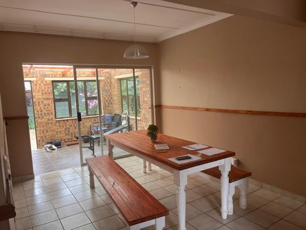 The heart of the home boasts expansive living and dining areas that flow effortlessly into the outdoor entertainment zone, where a sparkling pool and inviting braai area create the perfect setting for gatherings and relaxation.