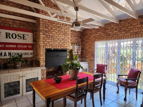 * Separate Braai room with built-in indoor braai, stack doors, and tiled flooring to create a versatile indoor-outdoor feel.