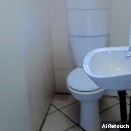 one bath room with bath basin and toilet with a hand shower plus a separate toilet with a basin tiles on the floor curtain rails