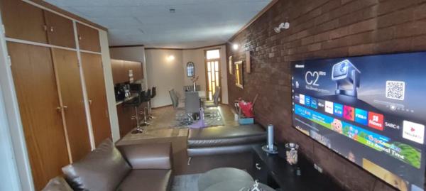 It has a spacious, open plan lounge, dining room and kitchen area.