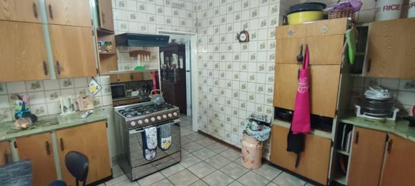 The kitchen has ample cupboard space as well as a scullery.