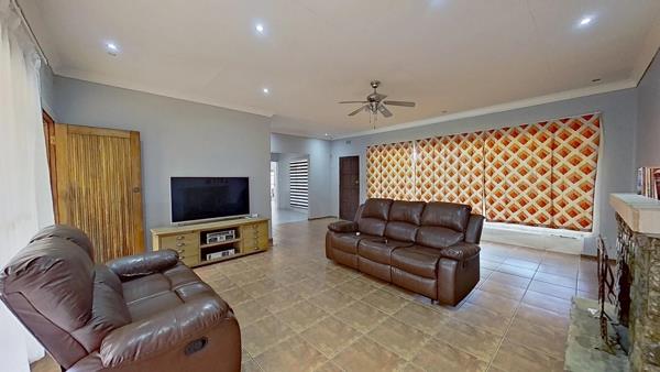 The home has a covered patio with a built-in braai and shares part of the backyard with the first home.