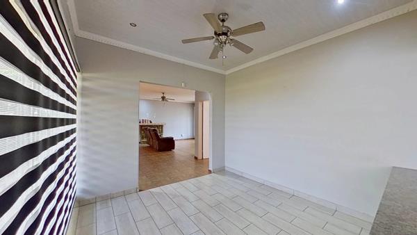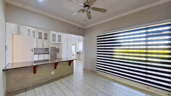 The kitchen and dining room is open-plan with the kitchen having ample cupboard space.