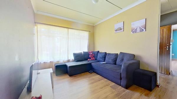 The living room is quite spacious and is adjacent to the bar/dining room area.