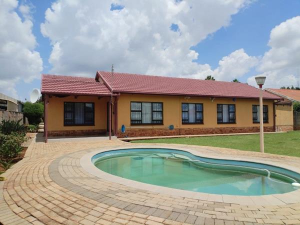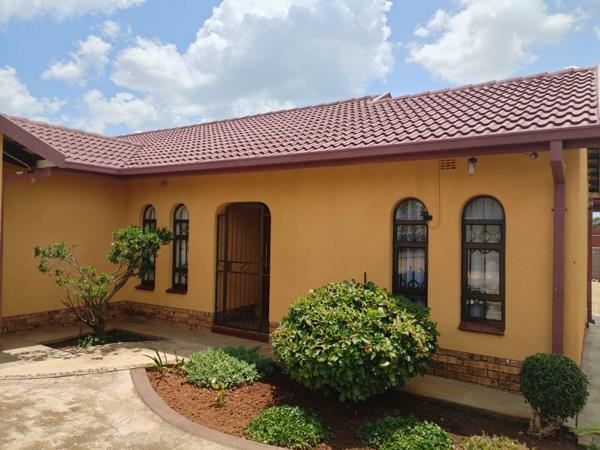 Discover the perfect blend of style, comfort, and security in this beautifully maintained family home. Boasting three spacious bedrooms, including a luxurious main bedroom with en-suite featuring a shower, marble basin, and toilet, this home exudes elegance. All bedrooms are tiled with built-in cupboards, complemented by warm wooden ceilings and pearly tiled floors throughout. The modern kitchen is fitted with wooden cupboards, a sleek electric stove with extractor fan, and a separate scullery with a double sink, ideal for everyday living.