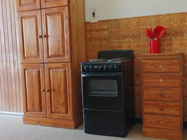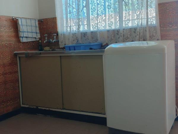 The kitchen is generous in size and well-equipped with built-in cupboards and an electric Defy stove, perfect for preparing family meals. It conveniently leads out to a closed-in courtyard, offering extra space for laundry or storage. The full bathroom includes a bath, wash basin, and toilet, ensuring everyday comfort and functionality.
