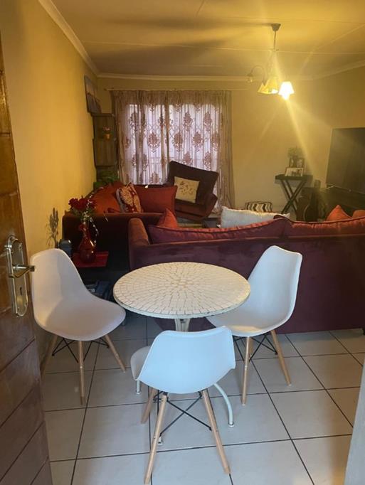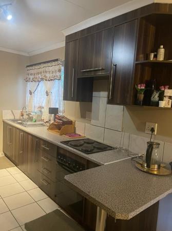 Unit consist of an open plan living space with kitchen, 3 Bedroom built in cupboards, 2 bathrooms one being ensuite to main bedroom and a double garage single motorized wooden door.