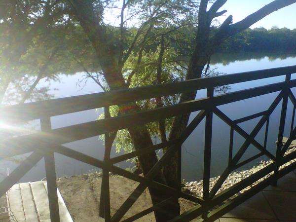 - 6-man decked pontoon with rails and motor for cruises on the river