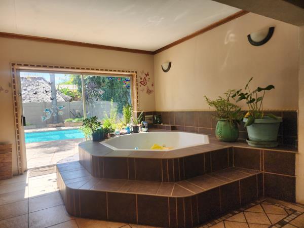 Jacuzzi Area Opening to Secure Garden with Large Swimming Pool