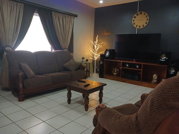 This charming home boasts a lounge, dining room, and a well-appointed kitchen with built-in cupboards, elegant granite tops, and an extractor fan.