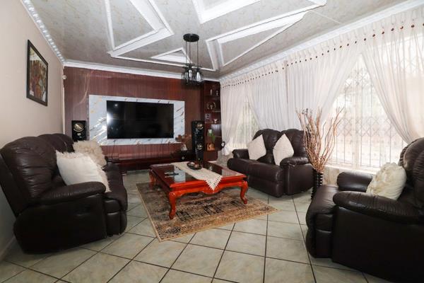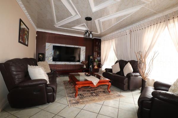 Stunning 3-bedroom home offering spacious living areas, including a lounge, TV room, and dining room with a sliding door leading to a veranda overlooking the sparkling swimming pool. The main bedroom boasts a private lounge, ample cupboards, and an en-suite bathroom with a bath and shower. Another bedroom also features a private lounge with direct access to the garden. The kitchen is a chefs dream, perfect for creating culinary delights. A beautiful and inviting home designed for comfort and style! An extra feature is the outbuilding, consisting of 2 bedrooms with a communal bathroom that secure a monthly rental income.