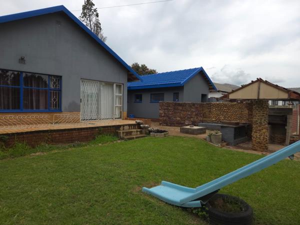 3 Bedrooms with Flat. House: 3 Bedrooms, Lounge-Dining area with Fireplace, Study, Single Bathroom, Separate Toilet, upgraded Kitchen with big Gas Stove, Bar, Patio, Single Garage, Covered Parking, 2 x Extra entrance with parking area, Wassing room, ServentStoor room, Outside Toilet, Big Fenced Yard with children play area. 10 Kva Solar system, fiber line with Wifi. House is newly painted with high quality paint and ready to move in.
